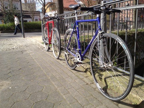 Im Hintergrund Papas Citybike mit einem stylischen Brooks-Sattel